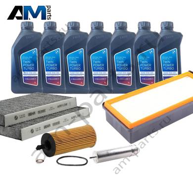 Состав набора: Оригинальный масляный фильтр 11428583898- 1 шт. Оригинальный воздушный фильтр 13718691835- 1 шт. Оригинальный салонный фильтр 64119366403- 1 шт. Оригинальное моторное масло BMW- 7 л. Пробка масляного поддона 11137535106- 1 шт. Уплотнительное кольцо 7119963132- 1 шт.