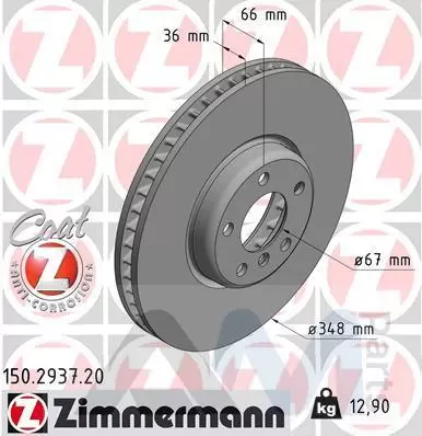 Передний правый тормозной диск 348X36 (150.2937.20) ZIMMERMANN для BMW 7 Серии (G11)