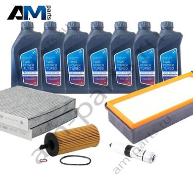 Состав набора: Оригинальный масляный фильтр 11428507683- 1 шт. Оригинальный воздушный фильтр 13718518111- 1 шт. Оригинальный салонный фильтр 64319312318- 1 шт. Оригинальное моторное масло BMW- 7 л. Пробка масляного поддона 11137535106- 1 шт. Уплотнительное кольцо 7119963132- 1 шт.