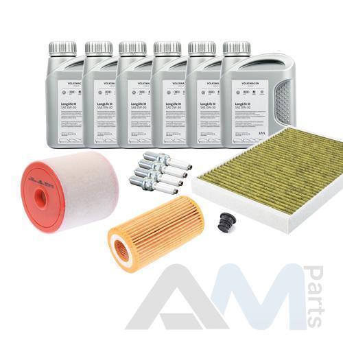 Состав набора ТО: Оригинальное моторное масло VAG- Special G 5W40 (допуск 502/505) - 4 л.Оригинальный масляный фильтр 03C115561H- 1 шт.Оригинальный воздушный фильтр 1F0129620- 1 шт.Оригинальный салонный фильтр (угольный) JZW819653B- 1 шт.Пробка масляного поддона N90813202- 1 шт.Оригинальные свечи зажигания 101905626- 4 шт.