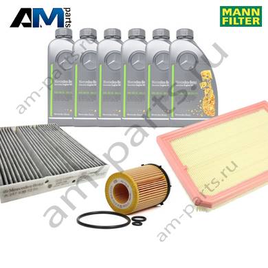 Состав набора ТО-2/4: Масляный фильтр HU711/6Z- 1 шт. Воздушный фильтр C28034- 1 шт. Фильтр салона CUK28013- 1 шт. Свечи зажигания 97566- 4 шт. Оригинальное масло МB 229.52- 6 л.