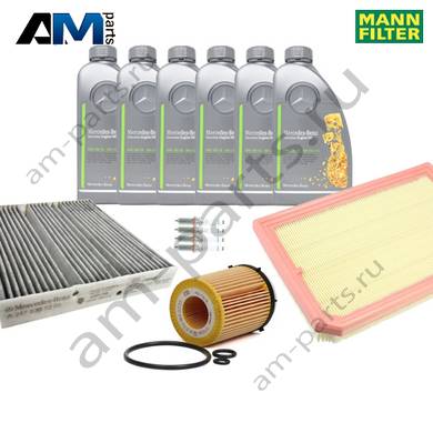 Состав набора ТО-2/4: Масляный фильтр A2701800109- 1 шт. Воздушный фильтр A2600940300- 1 шт. Фильтр салона A2478307203- 1 шт. Свечи зажигания A0001590500- 4 шт. Моторное масло МB 229.51- 6 л.
