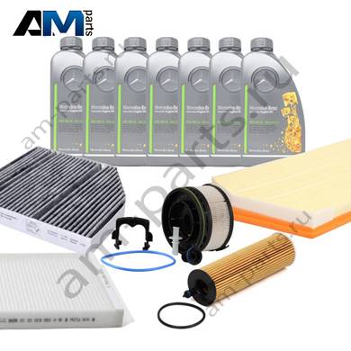 Состав набора ТО-2/4: Масляный фильтр HU6020z- 1 шт. Воздушный фильтр C45004- 1 шт. Фильтр салона CUK26023- 1 шт. Фильтр салона пылевой CU25002- 1 шт. Топливный фильтр PU11001zKIT- 1 шт. Оригинальное масло МB 229.52- 7 л.