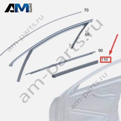 Уплотнитель стекла передней двери внутренний левый на Mercedes C W206 (2021-2026) A2067250300
