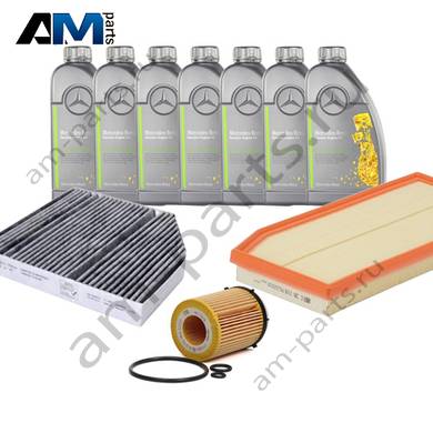 Состав набора ТО-2/4: Масляный фильтр A2701800109- 1 шт. Воздушный фильтр A2640940100- 1 шт. Фильтр салона A2068350100- 1 шт. Фильтр салона пылевой A1668300218- 1 шт. Свечи зажигания A0001590500- 4 шт. Моторное масло МB 229.52- 7 л.