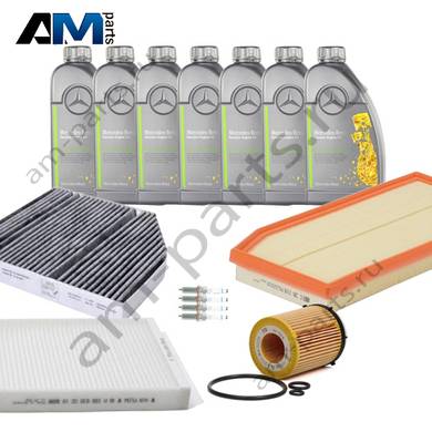 Состав набора ТО-1/3: Масляный фильтр A2701800109- 1 шт. Воздушный фильтр A2640940100- 1 шт. Фильтр салона A2068350100- 1 шт. Моторное масло МB 229.51- 7 л.