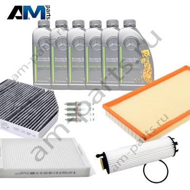 Состав набора ТО-2/4: Масляный фильтр HU6033Z- 1 шт. Воздушный фильтр A2540940200- 1 шт. Фильтр салона CUK26023- 1 шт. Фильтр салона пылевой CU25002- 1 шт. Свечи зажигания A2541590000- 4 шт. Оригинальное масло MB 229.71- 6 л.