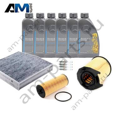 Состав набора ТО-1/3: Масляный фильтр A2781800009- 1 шт. Воздушный фильтр A1330940104- 1 шт. Фильтр салона A2468300018- 1 шт. Моторное масло MERCEDES МB 229.5- 6 л.