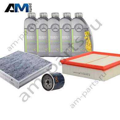 Состав набора ТО-1/3: Масляный фильтр W7032- 1 шт. Воздушный фильтр C22020- 1 шт. Фильтр салона CUK26007- 1 шт. Оригинальное масло МB 229.51- 5 л.
