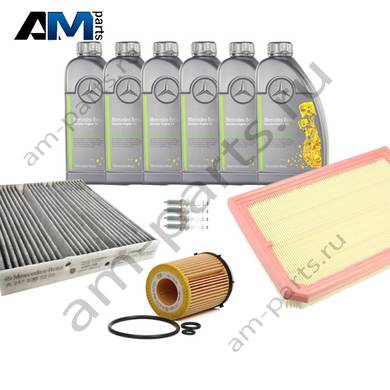 Состав набора ТО-1/3: Масляный фильтр A2701800109- 1 шт. Воздушный фильтр A2600940300- 1 шт. Фильтр салона A2478307203- 1 шт. Моторное масло MERCEDES МB 229.51- 6 л.