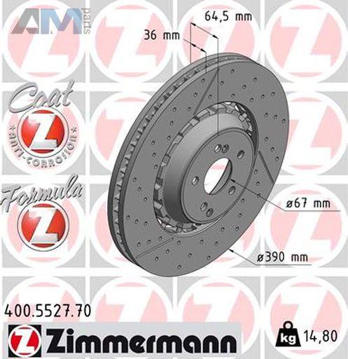 Передние перфорированные диски (400.5527.70) Zimmermann для Mercedes E-Class W213 E63 AMG