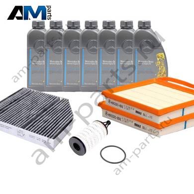 Состав набора ТО-2/4: Масляный фильтр A2761800009- 1 шт. Воздушный фильтр A2760940504- 2 шт. Фильтр салона A2058350147- 1 шт. Фильтр салона пылевой A1668300218- 1 шт. Свечи зажигания A2701590600- 6 шт. Моторное масло МB 229.5- 7 л.