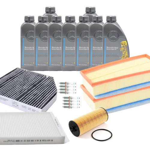 Состав набора ТО-1/3: Масляный фильтр A2781800009- 1 шт. Воздушный фильтр слева A177094000064- 1 шт. Воздушный фильтр справа A177094010064- 1 шт. Фильтр салона A2058350147- 1 шт. Моторное масло МB 229.5- 9 л.