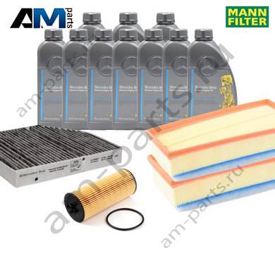 Состав набора ТО-1/3: Масляный фильтр A2781800009- 1 шт. Воздушный фильтр слева A177094000064- 1 шт. Воздушный фильтр справа A177094010064- 1 шт. Фильтр салона A4638352800- 1 шт. Моторное масло МB 229.5- 10 л.