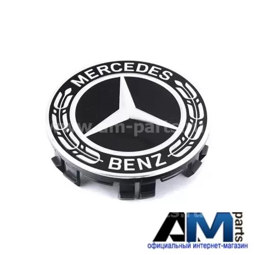Крышка ступицы колеса Звезда с лавровым венком (Цвет- Deep Black) на Mercedes GLE 2014-2018 A22240022009040