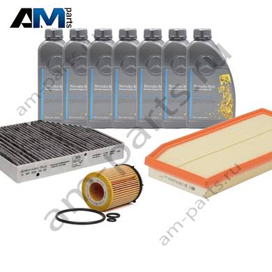 Состав набора ТО-2/4: Масляный фильтр A2701800109- 1 шт. Воздушный фильтр A2640940100- 1 шт. Фильтр салона A1678350400- 1 шт. Фильтр салона пылевой A1678350200- 1 шт. Свечи зажигания A0001590500- 4 шт. Моторное масло МB 229.5- 7 л.