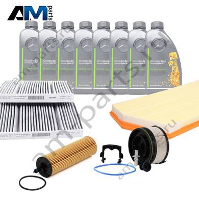 Состав набора ТО-2/4: Масляный фильтр HU6020z- 1 шт. Воздушный фильтр C45004- 1 шт. Фильтр салона CUK27021-2- 1 шт. Топливный фильтр PU11001zKIT- 1 шт. Оригинальное масло МB 229.52- 8 л.
