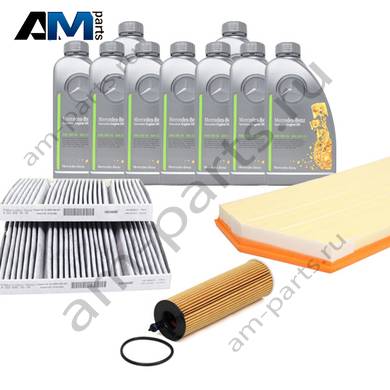 Состав набора ТО-2/4: Масляный фильтр HU6020z- 1 шт. Воздушный фильтр C45004- 1 шт. Фильтр салона CUK27021-2- 1 шт. Топливный фильтр PU11001zKIT- 1 шт. Оригинальное масло МB 229.52- 9 л.