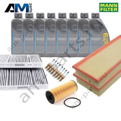 Состав набора ТО-2/4: Масляный фильтр A2781800009- 1 шт. Воздушный фильтр A2780940004- 2 шт. Фильтр салона A2228300318- 1 шт. Свечи зажигания A0041598103- 8 шт. Моторное масло МB 229.5- 8 л.