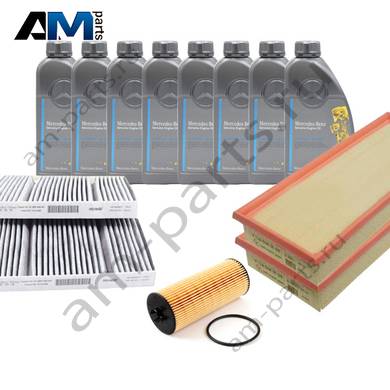 Состав набора ТО-2/4: Масляный фильтр A2781800009- 1 шт. Воздушный фильтр A2780940004- 2 шт. Фильтр салона A2228300318- 1 шт. Свечи зажигания A0041598103- 8 шт. Моторное масло МB 229.5- 8 л.