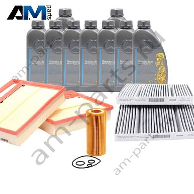 Состав набора ТО-2/4: Масляный фильтр HU721/3X- 1 шт. Воздушный фильтр C25110-2- 1 шт. Фильтр салона CUK27021-2- 1 шт. Свечи зажигания 5648- 24 шт. Оригинальное масло МB 229.5- 9 л.