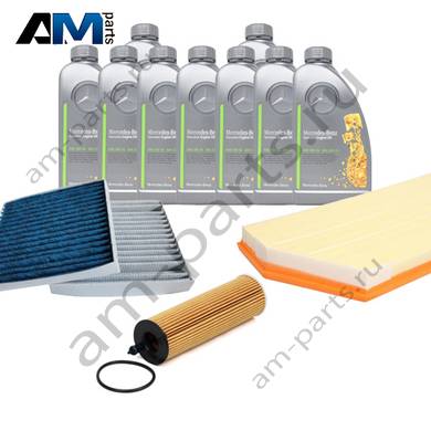 Состав набора ТО-1/3: Масляный фильтр HU6020z- 1 шт. Воздушный фильтр C45004- 1 шт. Фильтр салона CUK25034-2- 1 шт. Оригинальное масло МB 229.52- 9 л.
