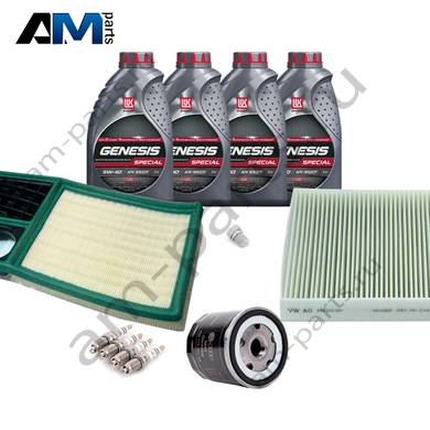 В Наборе ТО собраны оригинальные расходные материалы для прохождения ТО (фильтры и свечи) и масло LUKOil Special A3/B4 5w40 с допуском VAG 502 00/505 00.