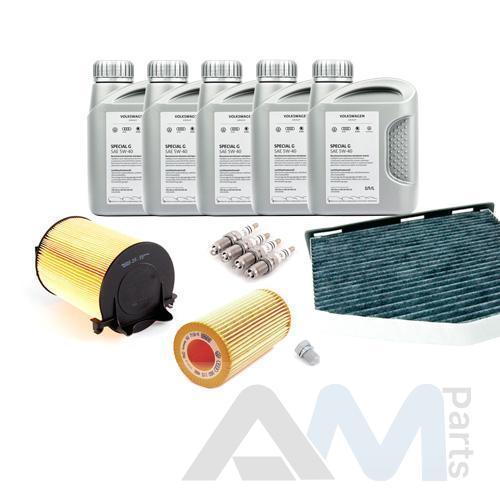 Состав набора ТО: Оригинальное моторное масло VAG- Special C 0W30- 5 л.Оригинальный масляный фильтр 06D115562- 1 шт.Оригинальный воздушный фильтр 1F0129620- 1 шт.Оригинальный угольный фильтр салона JZW819653B- 1 шт.Пробка масляного поддона N90813202- 1 шт.Оригинальные свечи зажигания 101905610A- 4 шт.