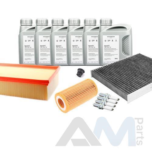 Состав набора ТО: Оригинальное моторное масло VAG- Special C 0W30 (допуск 502/505)- 5 л. Оригинальный масляный фильтр 06L115562B- 1 шт. Оригинальный воздушный фильтр 5Q0129620B- 1 шт. Оригинальный угольный фильтр салона- 1 шт. Пробка масляного поддона 06L103801- 1 шт.