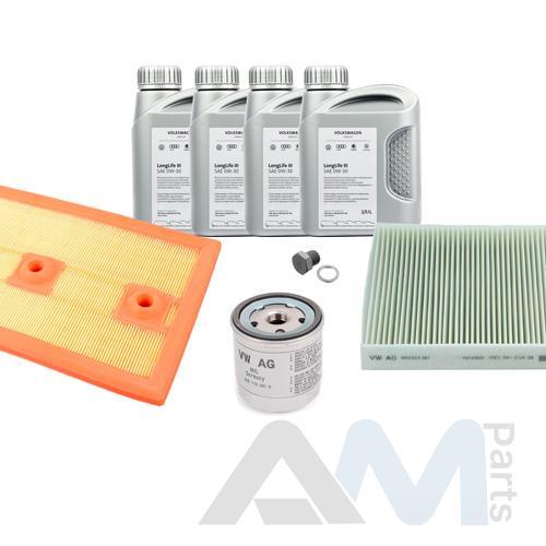 Состав набора ТО: Оригинальное моторное масло VAG Long Life III (504/507)- 4 л.Оригинальный масляный фильтр 04E115561H- 1 шт.Оригинальный воздушный фильтр 04E129620- 1 шт.Оригинальный салонный фильтр 6R0820367- 1 шт.Пробка масляного поддона N90288901 + кольцо N0138157- 1 шт.Оригинальные свечи зажигания 04E905601B- 4 шт.Оригинальный топливный фильтр 6Q0201051J- 1 шт.