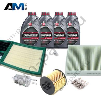В Наборе ТО собраны оригинальные расходные материалы для прохождения ТО (фильтры и свечи) и масло LUKOil Special A3/B4 5w40 с допуском VAG 502 00/505 00.