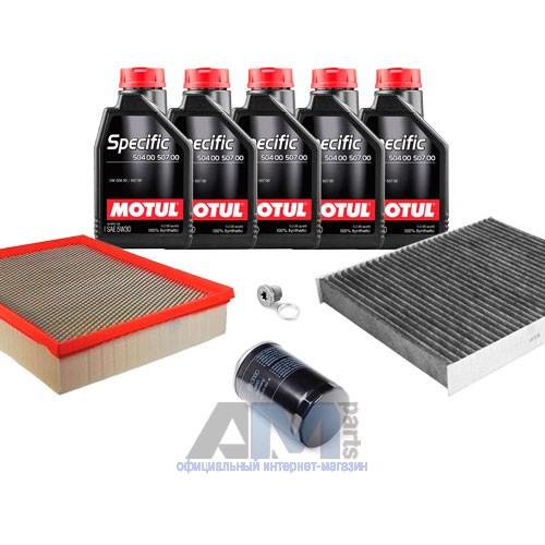 Состав набора ТО: Масло моторное Castrol Edge Professional LL III 5W30 (504/507) или 0W30 (502/505) или Shell Helix Ultra- 5 л. Фильтр масляный- 1 шт. Фильтр воздушный- 1 шт. Фильтр салона- 1 шт. Пробка масляного поддона с кольцом- 1 шт.