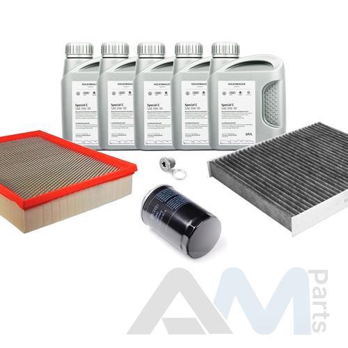 Состав набора ТО: Оригинальное моторное масло VAG Long Life III (504/507)- 5 л.Оригинальный масляный фильтр 06J115403Q- 1 шт.Оригинальный воздушный фильтр 2H0129620D- 1 шт.Оригинальный салонный фильтр 7H0819631A- 1 шт.Пробка масляного поддона N91167901 + кольцо N0138157- 1 шт.Оригинальные свечи зажигания 06H905601A- 4 шт.Оригинальный топливный фильтр 1K0201051K- 1 шт.