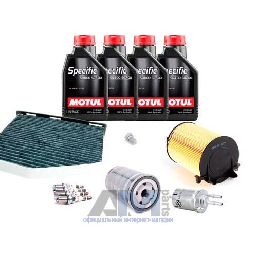 Состав набора ТО: Оригинальное моторное масло VAG Long Life III (504/507)- 4 л.Оригинальный масляный фильтр 06A115561B- 1 шт.Оригинальный воздушный фильтр 1F0129620- 1 шт.Оригинальный салонный фильтр JZW819653B- 1 шт.Пробка масляного поддона N90813202- 1 шт.Оригинальные свечи зажигания 101000033AA- 4 шт.