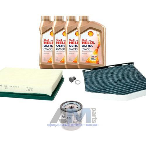Состав набора ТО: Масло моторное Shell Helix 5W40 (допуск 502/505)- 4 л.Фильтр масляный 04E115561H- 1 шт.Фильтр воздушный 04E129620A- 1 шт.Фильтр салонный JZW819653B- 1 шт.Пробка масляного поддона N90288901 + кольцо N0138157- 1 шт.Свечи зажигания 04C905616- 4 шт.