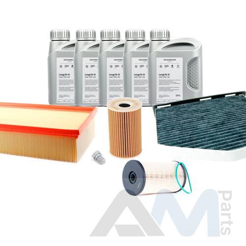 Состав набора ТО: Оригинальное моторное масло VAG Long Life III (504/507)- 5 л.Оригинальный масляный фильтр 03L115562- 1 шт.Оригинальный воздушный фильтр 1K0129620D- 1 шт.Оригинальный салонный фильтр JZW819653B- 1 шт.Пробка масляного поддона N90813202- 1 шт.