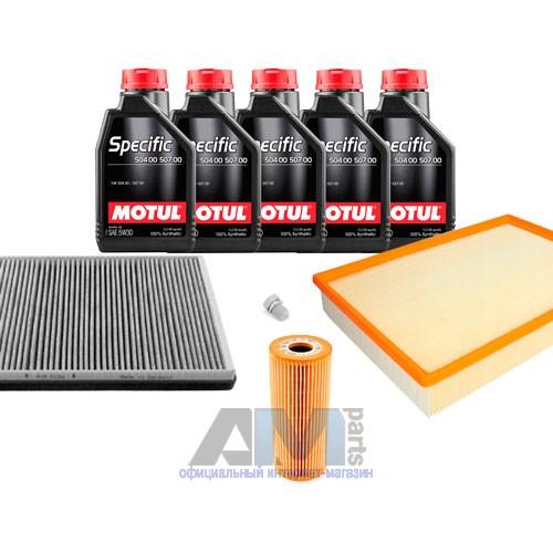 Состав набора ТО: Масло моторное Motul 5W30 (504/507)- 5 л.Фильтр масляный 074115562- 1 шт.Фильтр воздушный 2E0129620D- 1 шт.Фильтр салонный 2E0819638A- 1 шт.Пробка масляного поддона N90813202- 1 шт.Фильтр топливный 2E0127159- 1 шт.