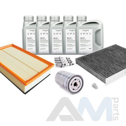 Состав набора ТО: Оригинальное моторное масло VAG- Special C 0W30 (допуск 502/505)- 5 л.Оригинальный масляный фильтр 06A115561B- 1 шт.Оригинальный воздушный фильтр 7H0129620A- 1 шт.Оригинальный салонный фильтр 7H0819631A- 1 шт.Пробка масляного поддона N90813202- 1 шт.Оригинальные свечи зажигания 101000033AA- 4 шт.Оригинальный топливный фильтр 1J0201511A- 1 шт.