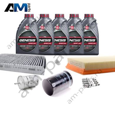 В Наборе ТО собраны оригинальные расходные материалы для прохождения ТО (фильтры и свечи) и масло LUKOil Special A3/B4 5w40 с допуском VAG 502 00/505 00.