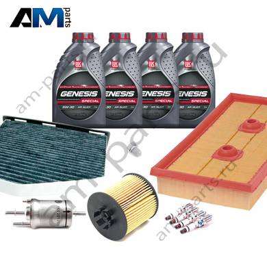 Состав набора ТО: Масло моторное Castrol Edge Professional LL III 5W30 (504/507) или 0W30 (502/505) или Shell Helix Ultra- 4 л. Фильтр масляный- 1 шт. Фильтр воздушный- 1 шт. Фильтр салона- 1 шт.Свечи зажигания- 4 шт. Фильтр топливный- 1 шт. Пробка масляного поддона с кольцом- 1 шт.