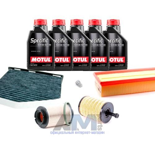 Состав набора ТО: Масло моторное Motul 5W30 (504/507)- 5 л.Фильтр масляный 071115562C- 1 шт.Фильтр воздушный 1K0129620D- 1 шт.Фильтр салона угольный JZW819653B- 1 шт.Пробка масляного поддона N90813202- 1 шт.
