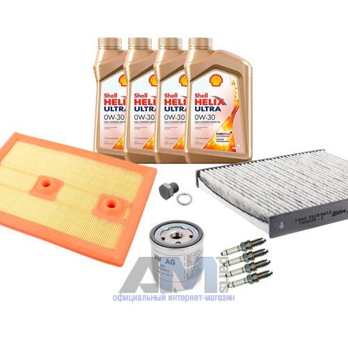Состав набора ТО: Масло моторное Shell Helix 0W30 (допуск 502/505 или AV-L 504/507) - 4 л.Фильтр масляный 04E115561H- 1 шт.Фильтр воздушный 04E129620- 1 шт.Фильтр салона угольный- 1 шт.Пробка масляного поддона N90288901 + кольцо N0138157- 1 шт.