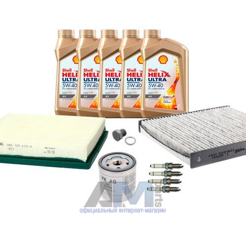 Состав набора ТО: Масло моторное Shell Helix 0W30 (допуск 502/505 или AV-L 504/507) - 4 л.Оригинальный масляный фильтр 04E115561H- 1 шт.Оригинальный воздушный фильтр 04E129620A- 1 шт.Оригинальный угольный фильтр салона- 1 шт.Пробка масляного поддона N90288901 + кольцо N0138157- 1 шт.Свечи зажигания 04E905601B- 4 шт.