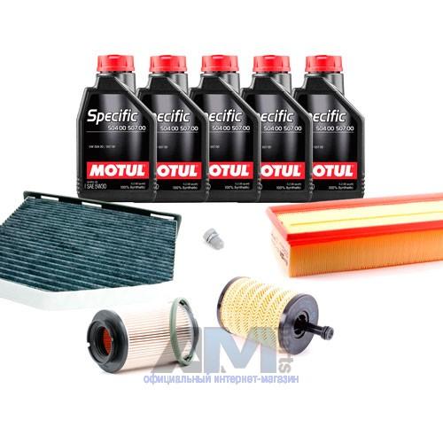 Состав набора ТО: Масло моторное Motul 5W30 (504/507)- 5 л.Фильтр масляный 071115562C- 1 шт.Фильтр воздушный 1K0129620D- 1 шт.Фильтр салона угольный JZW819653B- 1 шт.Пробка масляного поддона N90813202- 1 шт.
