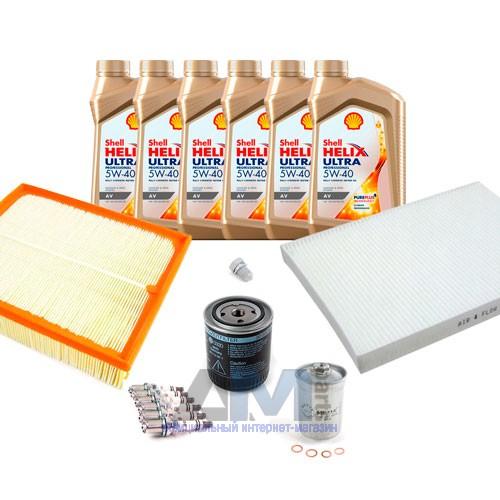 Состав набора ТО: Масло моторное Shell Helix 5W40 (допуск 502/505)- 6 л.Фильтр масляный 078115561J- 1 шт.Фильтр воздушный 058133843- 1 шт.Фильтр салона 1H0819644B- 1 шт.Пробка масляного поддона N90813202- 1 шт.