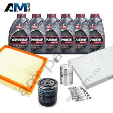 Состав набора ТО: Масло моторное Castrol Magnatec/Shell Helix Ultra 5W40- 6 л. Фильтр масляный- 1 шт. Фильтр воздушный- 1 шт. Фильтр салона- 1 шт.Свечи зажигания- 6 шт. Фильтр топливный- 1 шт. Пробка масляного поддона с кольцом- 1 шт.