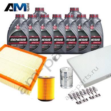 В Наборе ТО собраны оригинальные расходные материалы для прохождения ТО (фильтры и свечи) и масло LUKOil Special A3/B4 5w40 с допуском VAG 502 00/505 00.