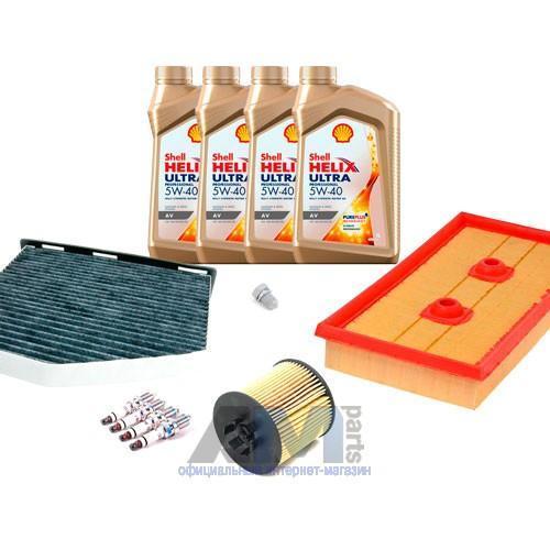 Состав набора ТО: Оригинальное моторное масло VAG- Special G 5W40- 4 л.Оригинальный масляный фильтр 03C115562- 1 шт.Оригинальный воздушный фильтр 03C129620B- 1 шт.Оригинальный салонный фильтр (угольный) JZW819653B- 1 шт.Пробка масляного поддона N90813202- 1 шт.Оригинальные свечи зажигания 101000063AA- 4 шт.