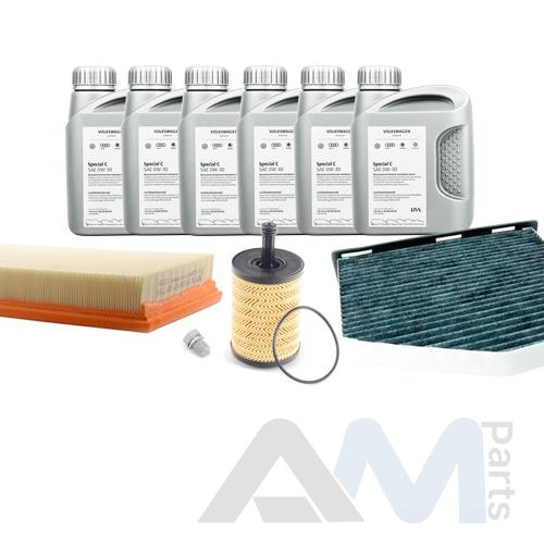 Состав набора ТО: Оригинальное моторное масло VAG Long Life III (504/507) - 6 л.Оригинальный масляный фильтр 070115562- 1 шт.Оригинальный воздушный фильтр 1K0129620- 1 шт.Оригинальный салонный фильтр (угольный) JZW819653B- 1 шт.Пробка масляного поддона N90813202- 1 шт.