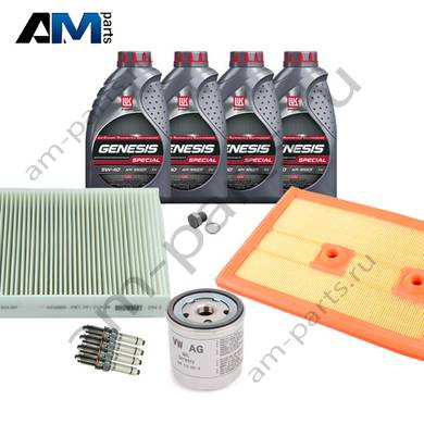 В Наборе ТО собраны оригинальные расходные материалы для прохождения ТО (фильтры и свечи) и масло LUKOil Special A3/B4 5w40 с допуском VAG 502 00/505 00.